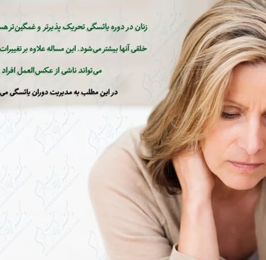 به نظر ميرسد كه زنان در دوره يائسگی تحريک پذيرتر و غمگينتر هستند و تغييرات خلقي آنها بيشتر ميشود.