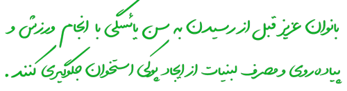 بنابراين بهتر است بانوان گرامی قبل از رسيدن به دوران يائسگی با انجام ورزش و پياده روی و مصرف لبنيات از ايجاد پوکی