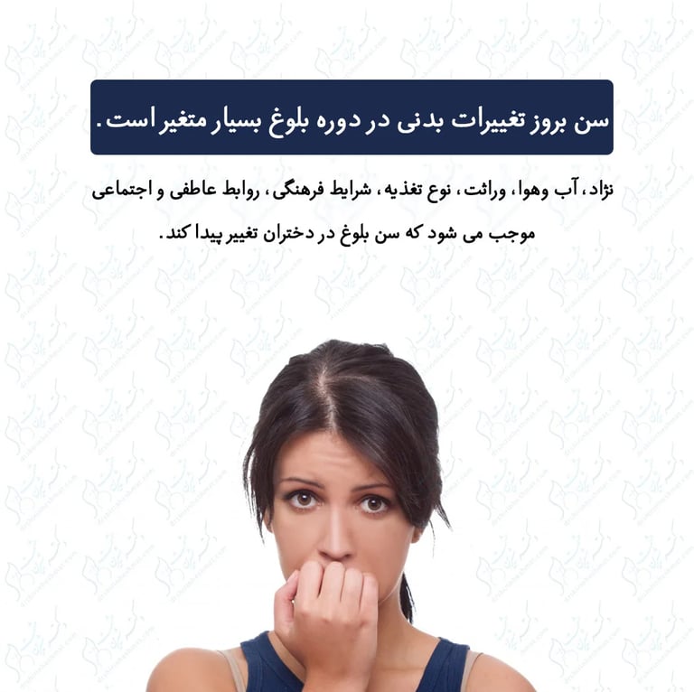 روند تکامل بلوغ در دختران متفاوت بوده و از سن 9 سالگی تا 16 سالگی متغییر می باشد.